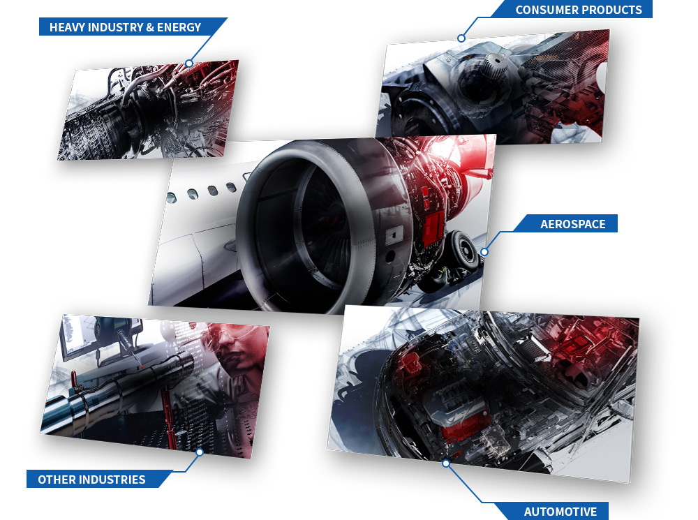자동차, 우주 항공, 철강, 중공업, 해양조선, 발전, 전자, 방산, 문화재 등 모든 산업 분야에서