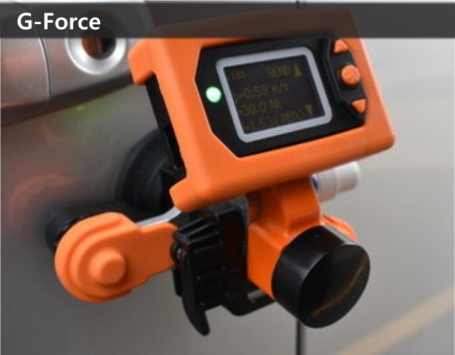 G-Force는 진공 컵을 사용하여 도어에 쉽게 부착되며, 버튼을 한 번 누르면 측정이 시작됩니다.